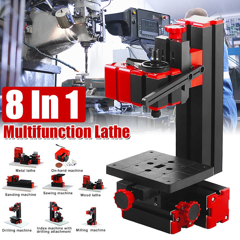 Raitool 8 In 1 Multipurpose Wood Model Making DIY Tool Basic Lathe Milling Drilling Sanding Tools