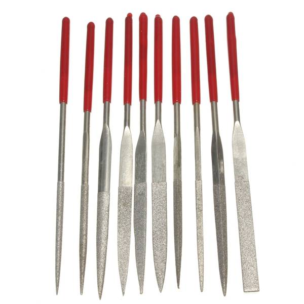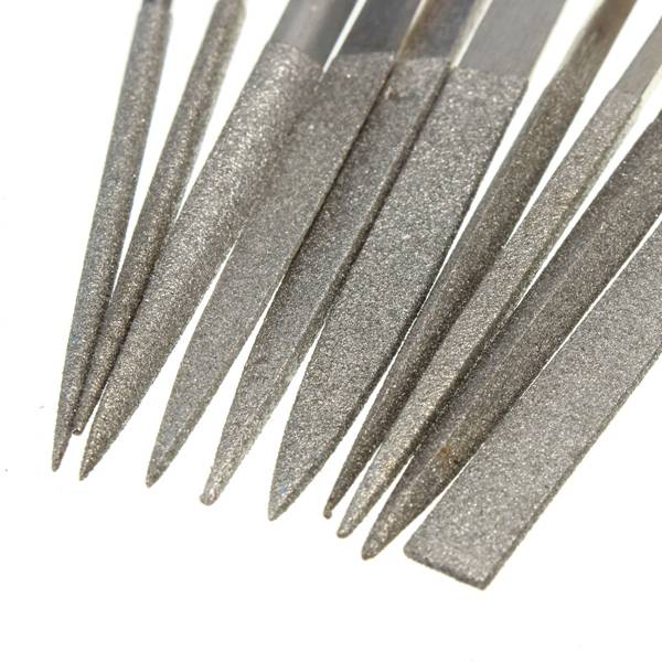 Package weight: 0.09 kg 10pcs Diamond Needle File Rasp Set For Jewelery Glass Jade Grinding Description: Brand:Raitool Model:HT05 Material:diamond Size:140X3mm(L*W) Quantity:10pcs Feature: Diamond needle file High hardness and durability with diamond material 10 different shape meet your different demands Ideal for jade,ceramic ,glass,crystal and metal grinding,shaping or polishing usage Package included: 1X Diamond Needle File Set(10pcs)