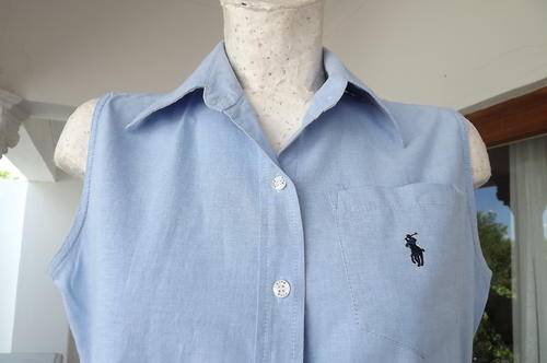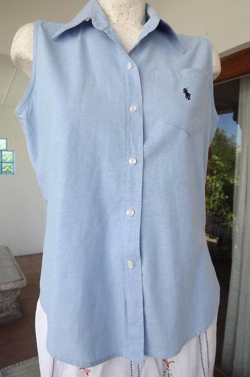 Ralph Lauren 100% Cotton Sleeveless Light Blue Top with Shirt Collar in size 10/34 - good condition