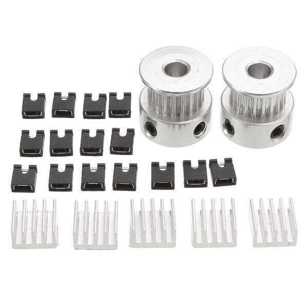 Type: GT2 Pulley teeth: 20 Pulley bore: 5mm (NEMA 17 shaft size) Pulley material: Aluminum Belt wide: 6mm Belt pitch: 2mm Belt material: Fiberglass reinforced rubber