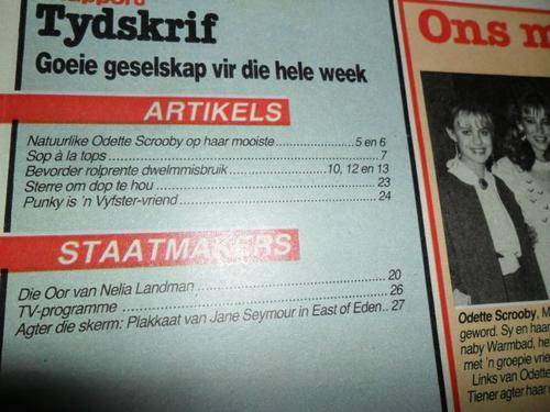 ( ODETTE SCROOBY MEJ SA 1982 , MISS SOUTH AFRICA , MISS S.A. , STEFFAN ERIKH VYFSTER 2 SE PUNKY , JANE SEYMOUR )