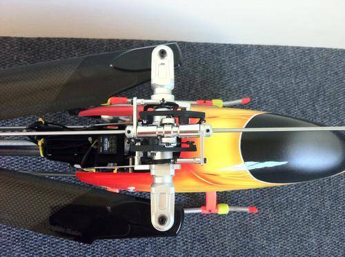 Raptor 90 with alu frames and lots of upgrades. Please look at pictures for detail like servo's and gyro fitted. Comes with 2xextra canopies. NO RECEIVER.