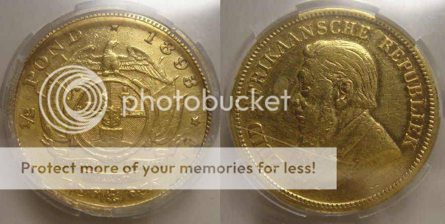 RARE : 1893 Paul Kruger Z.A.R. GOLD Half-Pond : Sangs graded VF35