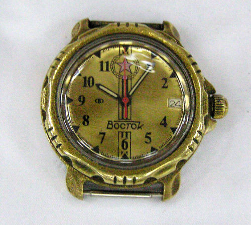 This unique Vostok Russian Military Komandirskie watch is in good working condition, despite being about 56 years old. The winding mechanism works as it should and the watch runs smoothly. The Vostok Watch Company was officially appointed during the 1960's by the Military to manufacture watches for military use. Each unit commander was issued a Komandirskie watch as a token of appreciation for their dedicated service. There were many different units in the Russian Military, and we were lucky to acquire some of these watches.