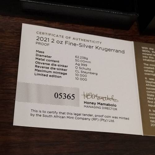 RARE 2021 SILVER KRUGER 2OZ PROOF COIN. RARE 2021 SILVER KRUGER 2OZ PROOF COIN.