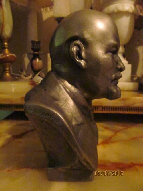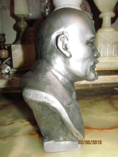 This bust is of Vladimir Lenin and cast in aluminum alloy . It is signed in Cyrillic by the artist G.H.Neroda