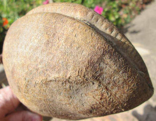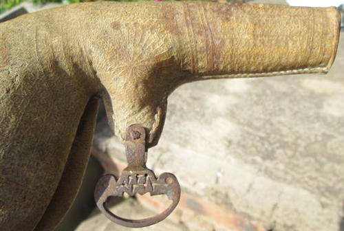 WHAT A GREAT CONVERSATION PIECE !!! PERFECT FOR YOUR MAN CAVE DISPLAY. I HAVE BEEN INFORMED THAT A ONCE PROUD BULL PAID THE ULTIMATE PRICE SO THAT HIS " VERY PRIVATE PARTS " COULD BE FASHIONED INTO THIS MOST INTERESTING GUNPOWDER FLASK ??? JUDGEING BY THE DESIGN THIS COULD BE QUITE POSSIBLE.......THERE IS MINOR DAMAGE TO SOME OF THE STITCHING, DONT LET THAT DETER YOU FROM BIDDING ON THIS INTERESTING AND UNUSUAL ITEM.......