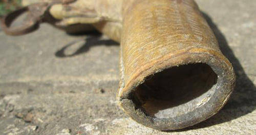 ANTIQUE LEATHER GUNPOWDER FLASK