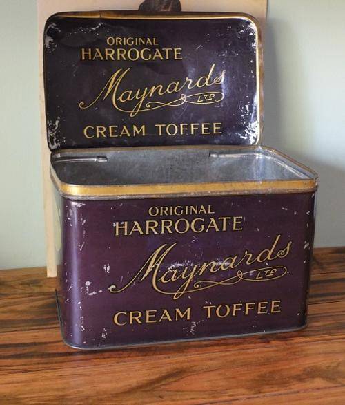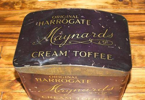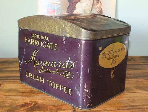 You are bidding on an Antique ORIGINAL HARROGATE MAYNARD'S CREAM TOFFEE TIN SHOP COUNTER? This is an usual larger size and shaped tin. I think it would have been used as a shop counter tin in the old days. Does have some wear and dents but still displays well. You will not see many of these.Please see photo's for condition. I will try answer any questions you may have in regards to this item. I will combine shipping for multiple purchases.