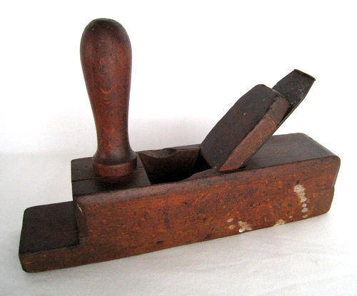 A hand made Wood Plane with forged steel blade. There is a slight crack in the area where the handle is attached, but otherwise in very good condition. Some feint paint marks on one side.