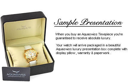Aquaswiss are dedicated to supplying the finest quality original timepieces for the 21st century. Following decades of design, development and inspiration, Aquaswiss stunning timepieces combine elegance with reliability, all Aquaswiss watches incorporate superb Swiss movements. For your protection an individual serial number is embossed on the back plate of each and every watch.