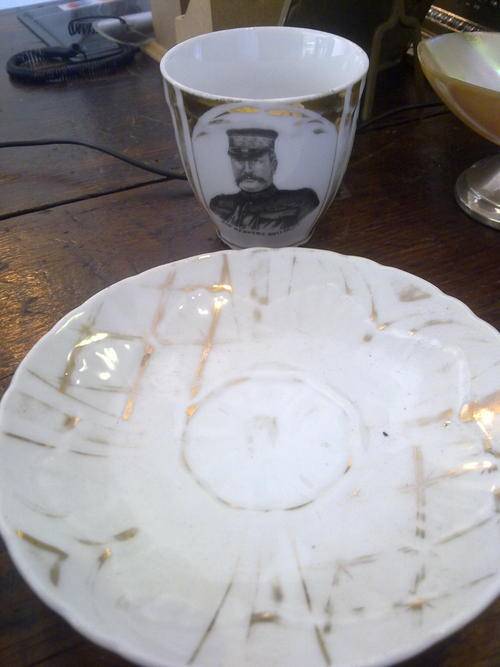 A very old cup and saucer made during the BOER WAR of SIR REDVER BULLER, VC.