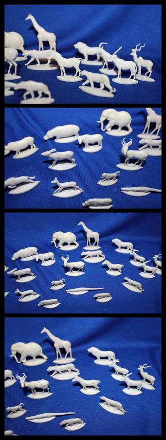 Ranging in size from 62mm in height for the Giraffe to 19mm in height for the baboon.