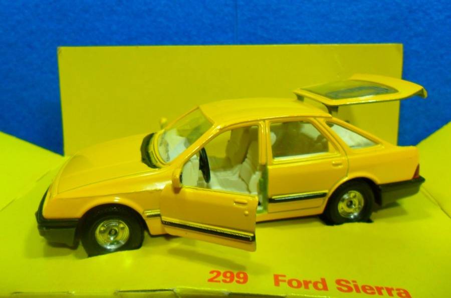 RARE STUNNING CORGI 299 FORD SIERRA 2.3 GHIA (YELLOW VERSION ) IN MINT CONDITION WITH OPENING DOORS AND BOOT AND DETAILED INTERIOR . SUPPLIED WITH THE ORIGINAL DISPLAY BOX WHICH IS IN FAIR TO POOR CONDITION !!! ( SEE PICTURES 10 TO 15 )
