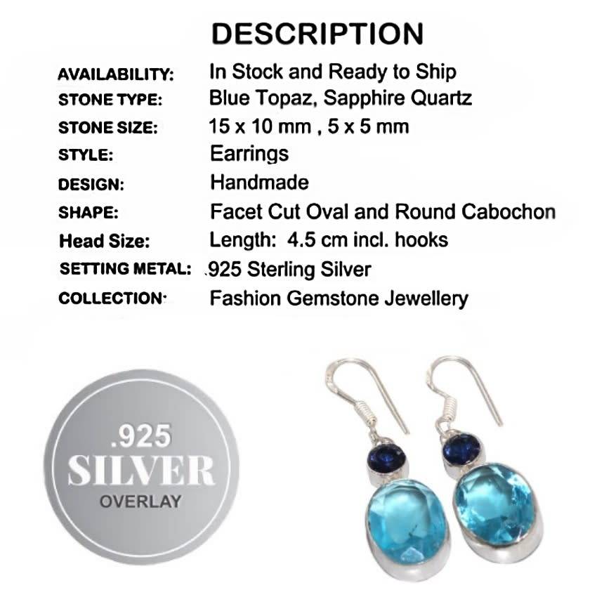 HANDMADE BLUE TOPAZ AND SAPPHIRE QUARTZ GEMSTONE EARRINGS