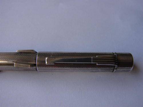 The pencil is in perfect working order and the back holds extra lead. Silver plate has rubbed at grip part of pencil.