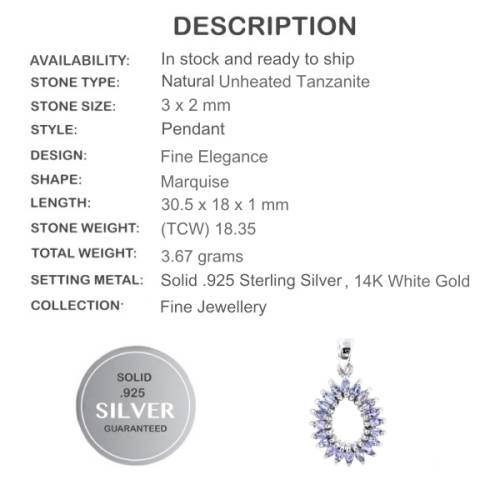 NATURAL MARQUISE SHAPE TANZANITE GEMSTONE PENDANT
