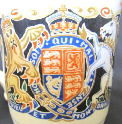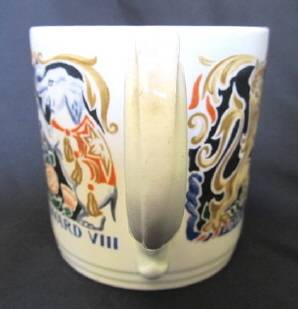 A rare Woods Ivory Ware mug commemorating the coronation (that never took place) of Edward VIII. Designed by the highly acclaimed British artist Dame Laura Knight (1877-1970), the first woman to be elected a full member of the Royal Academy. Condition good. Height 85 mm; rim diameter 83 mm.