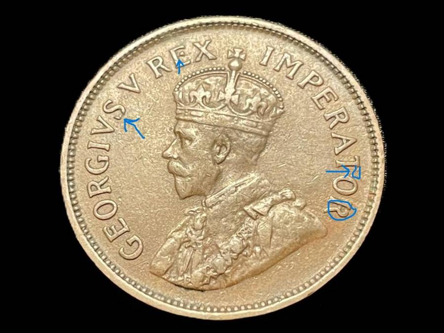 Rare error 1933 SA Union ½ penny coin with parts of the letters missing - Higher grade scarce date
