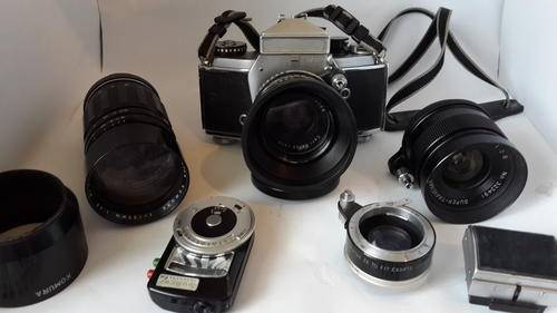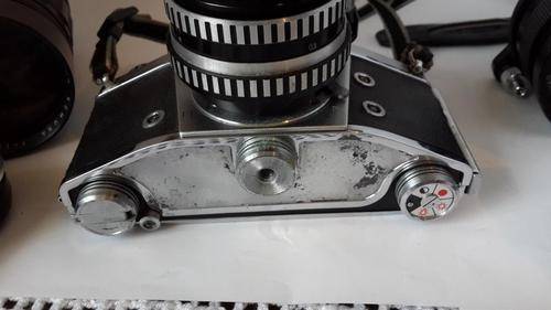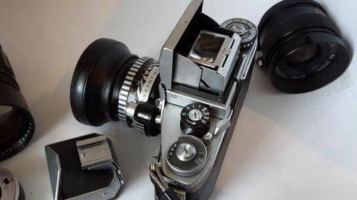 RARE EXAKTA CAMERA AND THREE LENSES. Exakta carl zeiss jena 50mm Super-travenar 28mm Sankyo kohki komura 135mm obvious signs of use but very good condition WORKING rare classic cameras