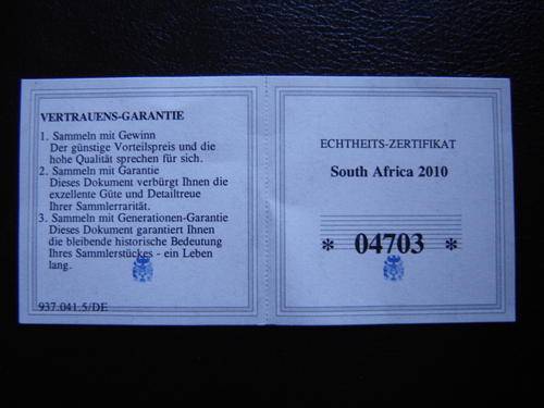 Its an almost unique chance to get such a rarity. There is a special R5 showing the World Cup stadium and a proof gold plated medal of Gold Reef City.
