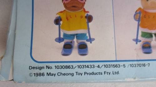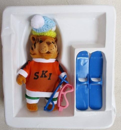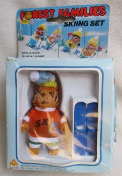 MAY CHEONG TOYS (M.C. TOYS - PART OF MAISTO GROUP) DISTRIBUTED FOREST FAMILIES FROM 1986 TO 1990 - RELATIVELY THE SAME SIZE AS SYLVANIAN FOREST FAMILIES AND EASY TO MIX AND MATCH. THESE M.C. FOREST FAMILIES HAVE BECOME HIGHLY COLLECTABLE, OFTEN COMMANDING HIGHER VALUES THAN THEIR SYLVANIAN FAMILY COUNTERPARTS. HERE IS ONE OF THE ORIGINAL 1986 RELEASES - A SKIING SET COMPRISING OF FULLY JOINTED 9CM TALL FLOCKED TIGER, A PAIR OF SKIS, GOGGLES AND A SKI POLE IN ORIGINAL BOX. THE BOX IS RATHER SHOP WORN BUT TIGER AND ACCESSORIES IN EXCELLENT CONDITION. REFER IMAGES