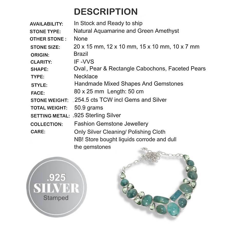 NATURAL AQUAMARINE MIXED SHAPES AND GREEN AMETHYST GEMSTONE NECKLACE