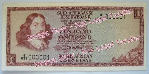 Rare - First Note of a Series!!!! TW de Jongh 3rd Issue R1.00 Note Serial No. B625 000001 EF+