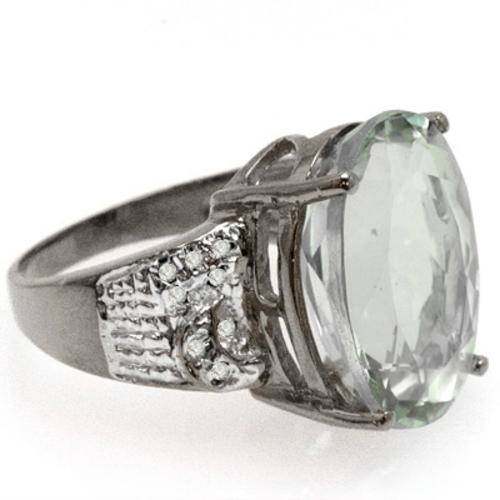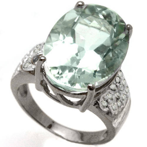 RARE GREEN AMETHYST & 20PCS WHITE DIAMOND 0.925 STERLING SILVER RING