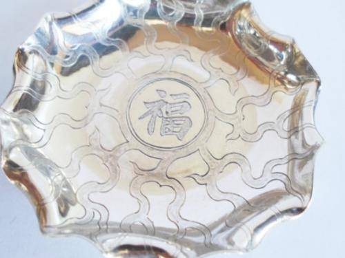 RARE!! HALLMARKED PAIR OF 19th CENTURY CHINESE SILVER DISHES OF GOOD FORTUNE CIRCA 1890's 74.2gr
