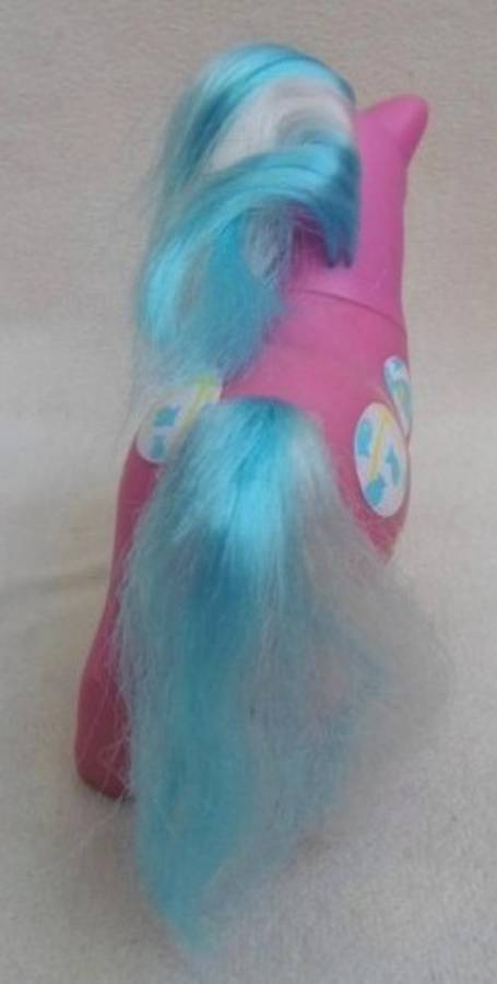 12CM TALL, BEACH BALL A G1 YEAR 7 SUNSHINE PONY GOING CHEAP BECAUSE SOME LITTLE HAND WITH A PAIR OF SCISSORS SNIPPED TAIL AND MANE AND WHAT'S LEFT IS ALSO NOT TOO SMOOTH. OTHER THAN THAT CONDITION IS GOOD AND HE IS A REAL COLLECTABLE!! . MARKED 'C85 HASBRO BRADLEY/MADE IN/ CHINA' UNDER HIS HOOVES REFER IMAGES SHIPPING R50 ( COMBINED RATES AVAILABLE)