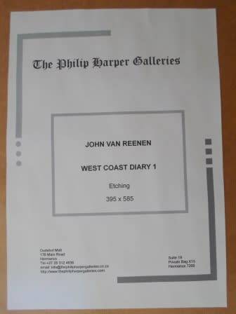 RARE JOHN VAN REENEN 8/50 "WEST COAST DIARY 1" HAND COLOURED ETCHING 585 X 385mm VALUE R2500!!