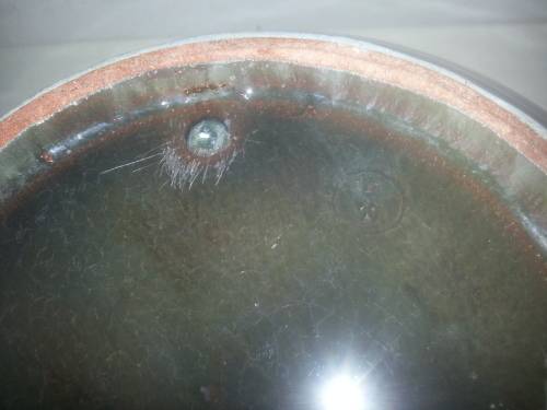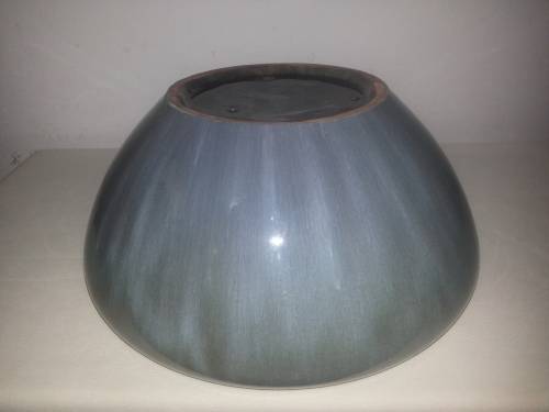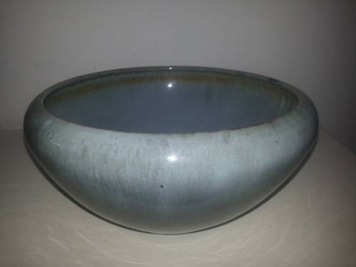 Offered for sale is a fine, large beautifully potted Linn Ware bowl in a rare grey-mauve coloured glaze. It is a large ,imposing piece which would command attention in an interior or on a table setting. It is a hand thrown and glazed bowl made from a red bodied earthenware with a streaked and mottled glaze brush painted on to the body of the piece. The base is marked with the Linn Ware studio logo LW letters contained in a circle stamped into the clay with a lug. It has an elegant bulbous shape tapering outwards from a circular foot rim to a wide round aperture . The bowl is in good condition. This item was made by the Linn Ware manufactory located in Cullinan Olifantsfontein on the East Rand of Johannesburg. The piece was made by highly skilled female expatriate British art potters and dates to approximately 1940-1950.
