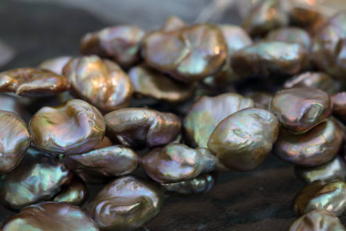 Keshi pearls aren’t found in large quantities and are an extremely rare form of pearl. They can take up to seven years to form. These pearls come in many shapes, hues, luster, colours and sizes. One of the remarkable things about keshi is that their colour and luster remains unchanged over time. Because they have no nucleus, keshi pearls are composed entirely of nacre resulting in a bright luster and making them desirable to jewelers and collectors who wish to design something unique.