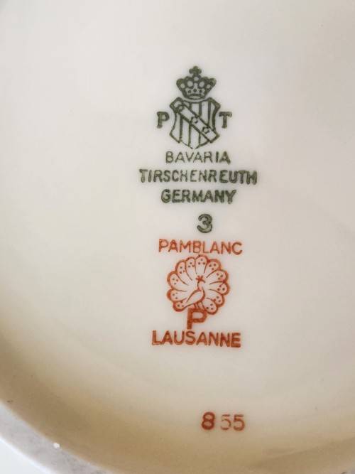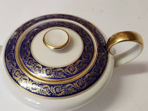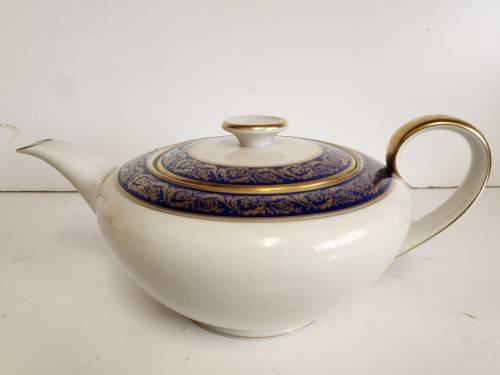 RARE MID-CENTURY VINTAGE BAVARIA TIRSCHENREUTH GERMANY (PAMBLANC LAUSSANNE) TEA POT. THIS AWESOME TEA POT IS IN AN EXCELLENT CONDITION WITH NO CHIPS OR CRACKS AND WITH VIRTUALLY NO LOSS OF THE GOLD FEATURES. IT MEASURES 12 CM HIGH (BOTTOM TO FINIAL), 27 CM HANDLE TO HANDLE AND 18 CM IN DIAMETER AROUND THE BULBOUS BODY.