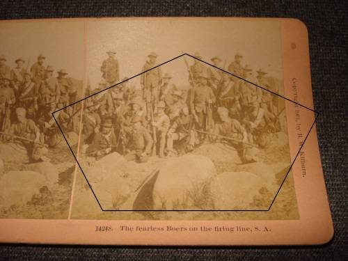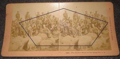 Please see all photos for details ,The black crown is a watermark we have added onto image this black line and mark is not actually on the image at all, the images are perfect on both sides of the view.This lot is for 1 Rare Kilburn published 1901 stereoview titled : The fearless Boers on the firing line S.A...the image works well in the viewer it looks excellent in 3 dimension features old and young boer men with their mausers ready for the front.These photographs are genuine and over 110 years old. they are on real photographic paper and then mounted on card...These are genuine photographic cards for viewing in 3d from a stereoscope viewer. A rare view published by Kilburn and co in USA
