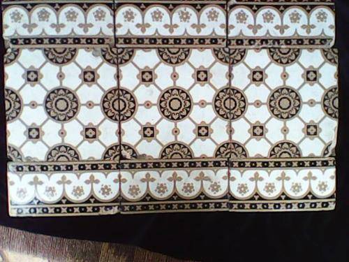 Consisting of 7x rectangular tiles (15cm x 7.5cm) and 3x square tiles (15cm x 15cm), this rare find is a must-have! Has "Minton England" impressed mark on each tile at the back, these were salvaged from a demolished hotel on the South Coast. Unfortunately in the salvage operation most tiles were damaged (see photos), however this is such a rare find!