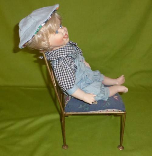 RARE!!! MUSICAL PORCELAIN DOLL WITH ROTATING HEAD!!! Working! Vintage Boy on a Handmade Metal Chair