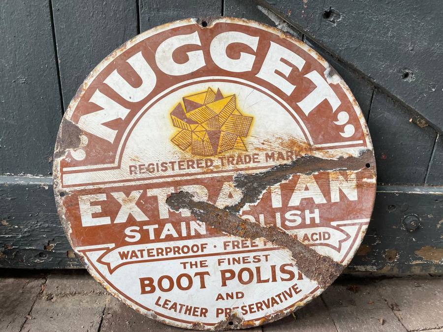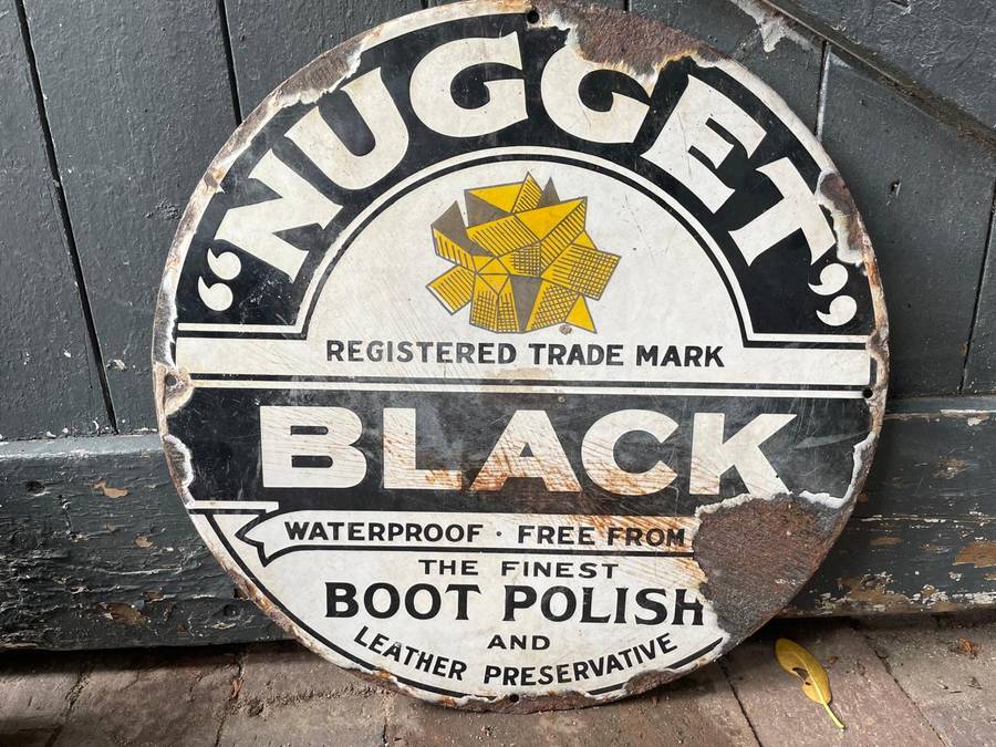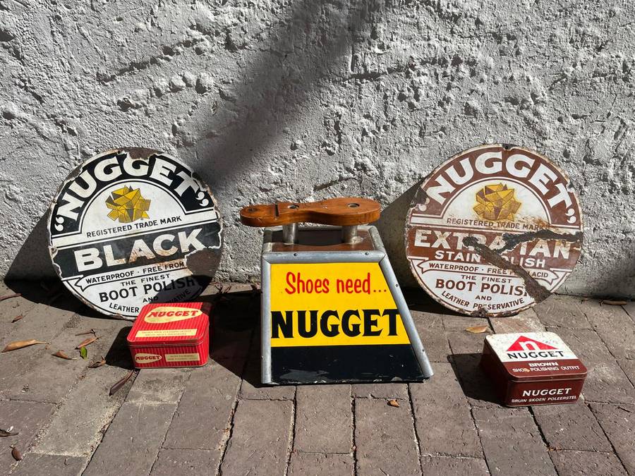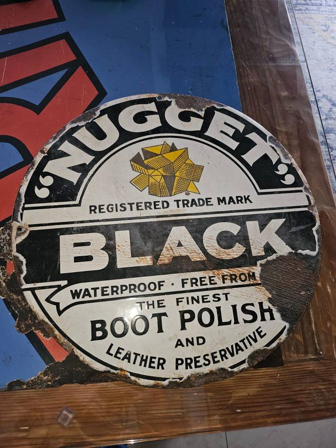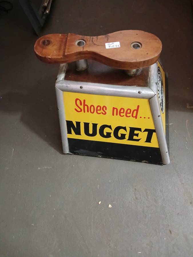 Rare Nugget Shoe Chair plus 2 original Nugget Enamel Signs