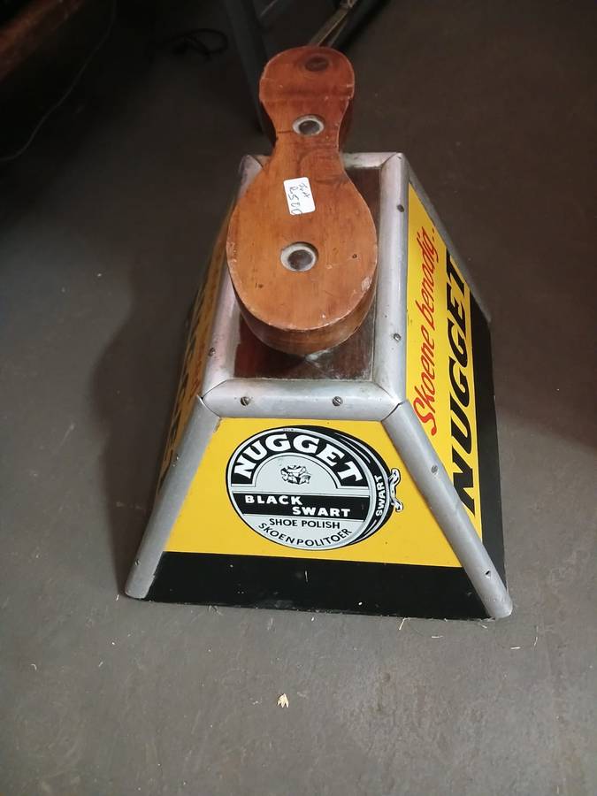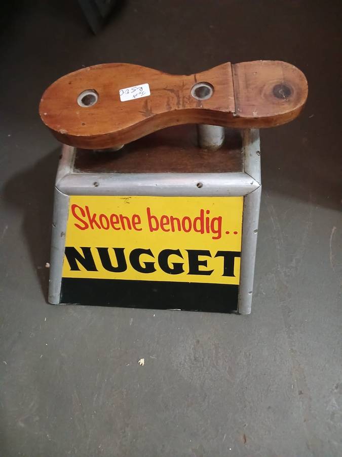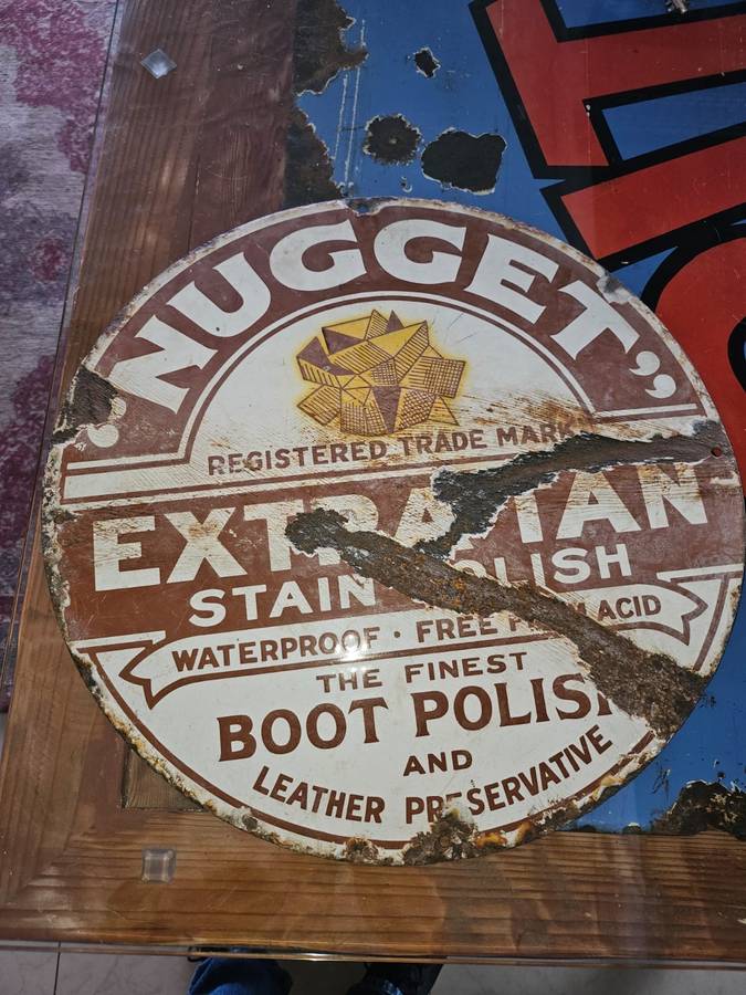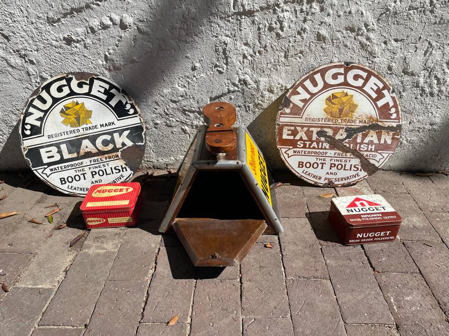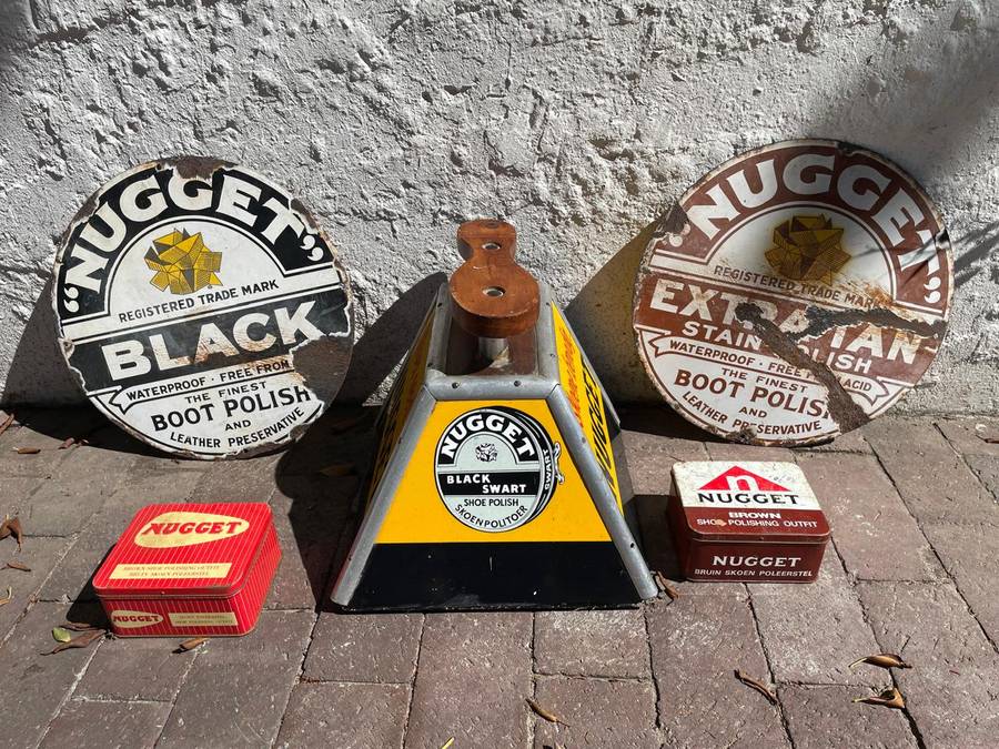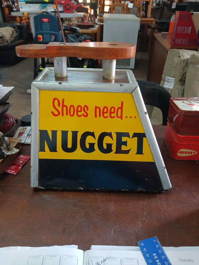 Rare Nugget Shoe Chair plus 2 original Nugget Enamel Signs
