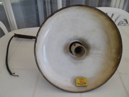 rare old large enamel shade light with fitting and pipe size of shade is 380mm wide
