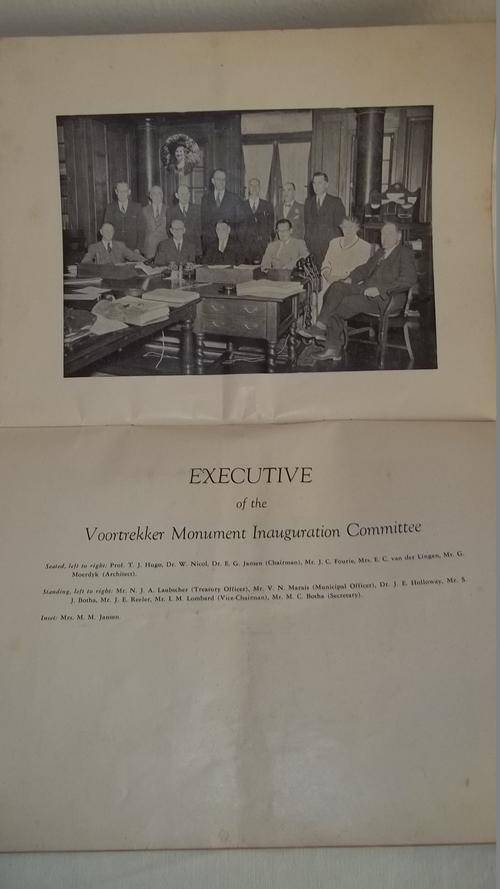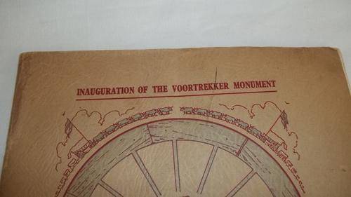 THIS AMAZING HISTORIC 64 PAGE BOOKLET IS THE OFFICIAL PROGRAMME FOR THE FOUR DAY EVENT OF THE OPENING OF THE VOORTREKKER MONUMENT BETWEEN DECEMBER THE 13th TO 16th 1949. I AM NOT SURE HOW MANY OF THESE PROGRAMMES REMAIN, BUT THIS IS TRULY AN ITEM THAT NEEDS TO BE PRESERVED. THE BOOK IS IN GOOD CONDITION CONSIDERING THE AGE OF THE BOOK WITH NO PAGES MISSING OR TORN.