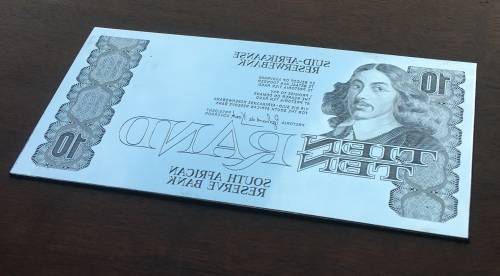 RARE** Original South Africa - G.de Kock "R10 Ten Rand Note Printing Plate** Front Plate