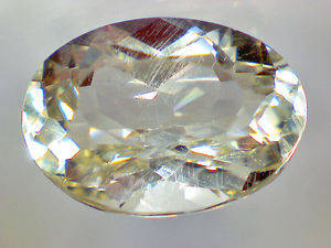 Orthoclase is a rare gemstone that belongs to the feldspar group, which also includes moonstone, amazonite, spectrolite and labradorite. Therefore, orthoclase is sometimes also called "K-spar". Orthoclase gemstones are typically champagne yellow, golden yellow or greenish, though they can be other colours. The name, "orthoclase" is a Greek word meaning "straight fracture", which refers to the cleavage planes of orthoclase being at right angles to each other. Orthoclase is faceted into attractive gemstones and also has an industrial use as a scouring agent in the making of some glasses and ceramics.