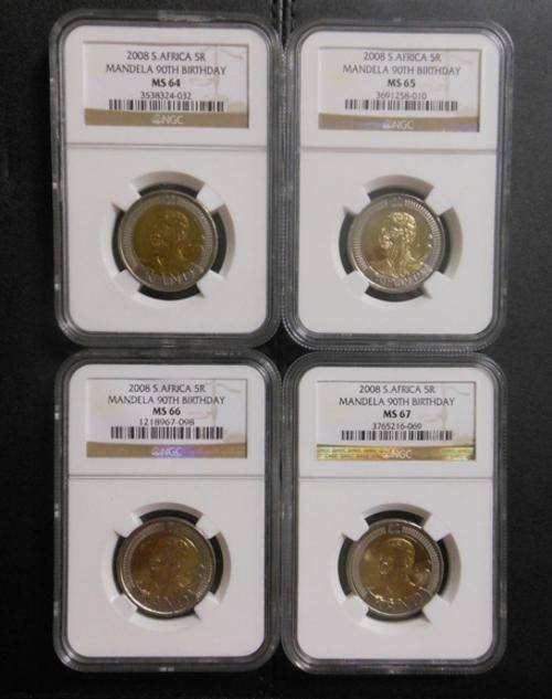 Great Coins.........What a Great BUY !!!! Get them all now !!! Nelson Mandela 90th Birthday coins, all NGC Graded MS62, MS63, MS64, MS65, MS66 and Yes MS67 !!!!!! LOw LoW StaRt !!!!!!