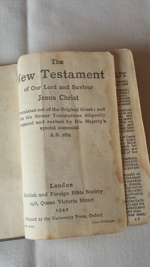 The size of the Bible measures approximately 80mm x 120mm. No attempt has been made to restore the book.