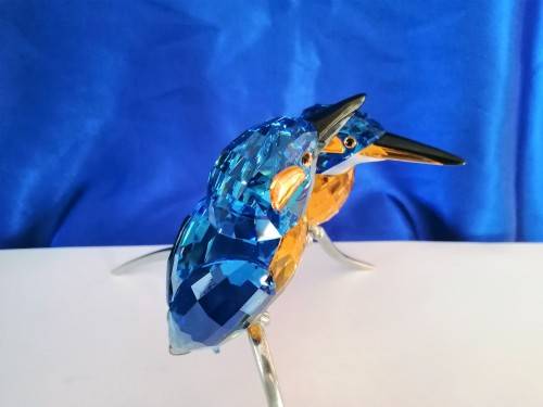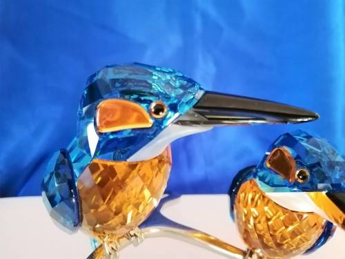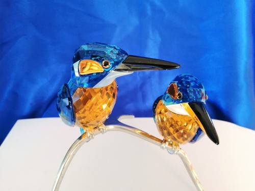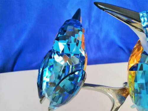 The Swarovski Crystal Paradise Kingfishers are created in Blue Turquoise, Aquamarine, Sun and clear crystal, perched on a silver-tone metal stand. They are created with approximatelytwenty separate parts.