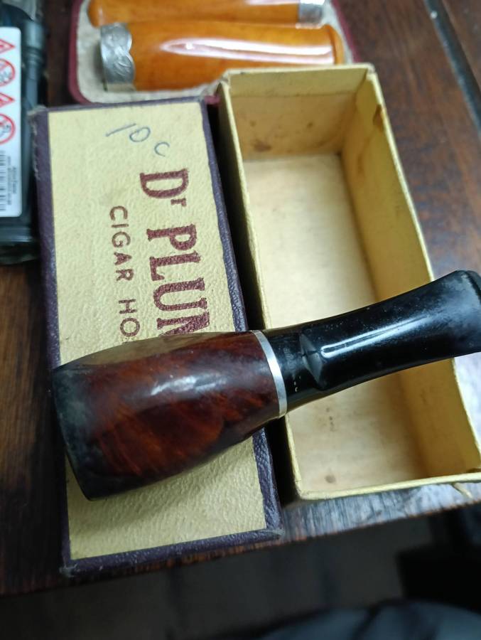 THE TWO ITEMS IN THE SAME BOX HAVE AN AMBER STEM, AND SILVER COLLAR.