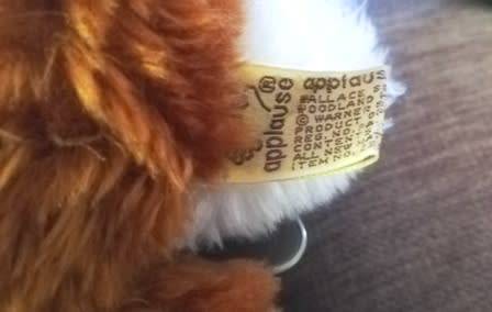 A 38 year old Vintage toy with the Applause blue plastic tag and a tush tag. His height is 18cm.