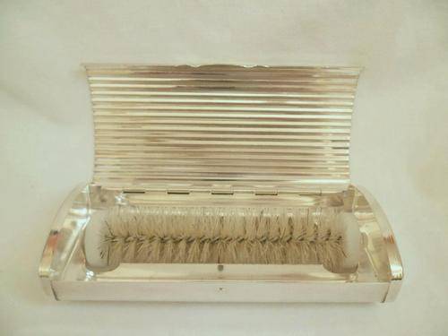 RARE VINTAGE SHERATONN ITALY SILVER PLATED "SILENT BUTLER" TABLE CRUMB SWEEPER OR CLOTH BRUSH, MINT!